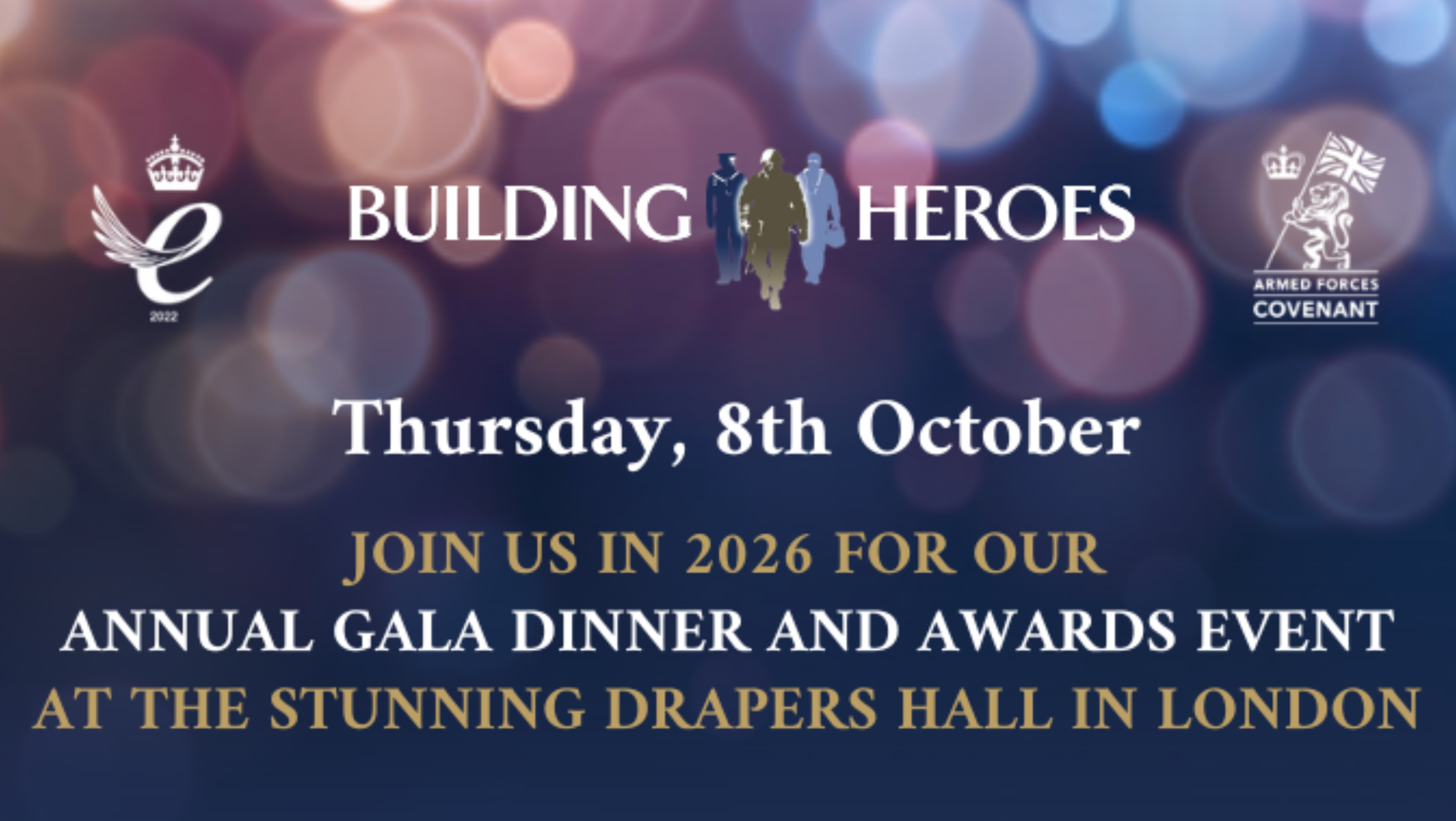 Building Heroes Gala Dinner and Awards 2026 at Drapers Hall, London. Join supporters, partners and graduates for a memorable evening of fine dining, inspiring stories, live entertainment and celebration, while raising vital funds to support veterans and the Armed Forces community into meaningful construction careers and brighter futures.